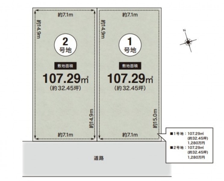 | 備考 | ※1号地・2号地まとめて、1980万円でも販売中 | ||