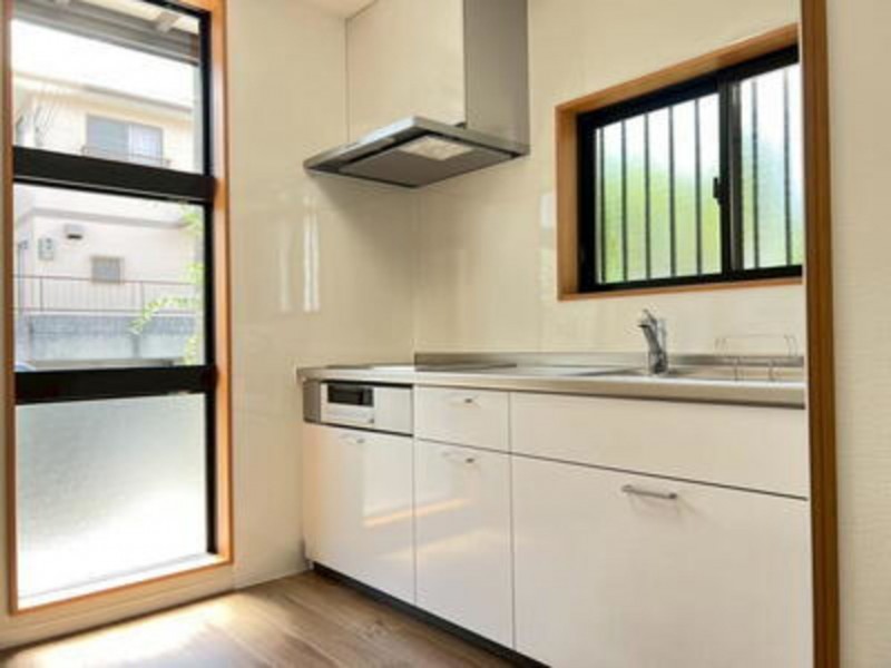 | 設備・条件 | 側溝、システムキッチン、IHクッキングヒーター、シャンプードレッサー、洗浄便座、複層ガラス、モニタ付インターホン、1BOX駐車可、駐車場2台分、床下収納、リフォーム済み、コンパクト設計の2LDK、小屋根裏収納庫、外壁サイディング、エアコン1台新調 | ||