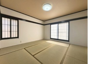 | 備考 | 2025年10月リフォーム実施:ベランダ塗装・玄関特殊塗装・間取り変更工事・キッチン新調・キッチンパネル新調・洗面台新調・洗濯パン新調・トイレ新調・ダウンライト新設・クロスすべて貼替・フロアタイル貼替・CF貼替・室内一部塗装・畳表替え・襖貼替・障子貼替・洗い工事一式 ※管理費など月額2,400円要 | ||