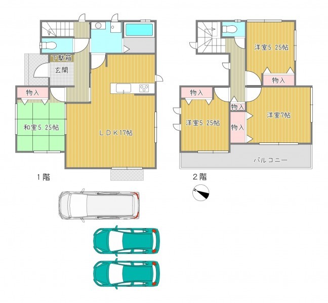 設備・条件 システムキッチン、カウンターキッチン、IHクッキングヒーター、オール電化、洗浄便座、1BOX駐車可、駐車場2台分、駐車場3台分、床下収納、トイレ2箇所、並列3台駐車可能