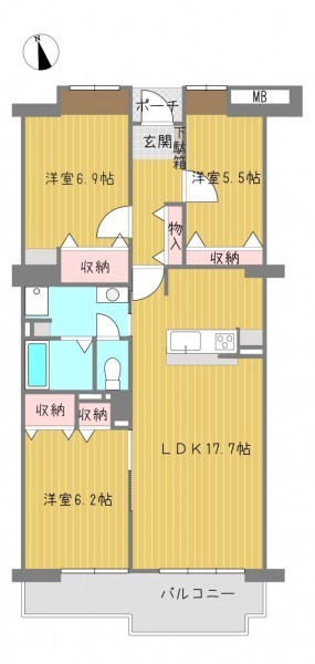 総戸数 63戸 バルコニー 10.28㎡ (南側)