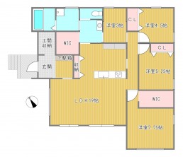 | 設備・条件 | 側溝、システムキッチン、カウンターキッチン、シャンプードレッサー、洗浄便座、浴室乾燥機、ウォークインクローゼット、1BOX駐車可、駐車場2台分、駐車場3台分、トイレ2箇所、角部屋、平屋建て、マリンホーム 施工、耐震等級3(最高等級の耐震性能)、太陽光+エネファーム搭載のZEH住宅、北西北東角地、並列駐車3台 | ||