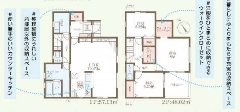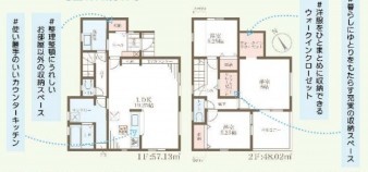 | 設備・条件 | システムキッチン、カウンターキッチン、IHクッキングヒーター、オール電化、シャンプードレッサー、洗浄便座、浴室乾燥機、ウォークインクローゼット、モニタ付インターホン、1BOX駐車可、駐車場2台分、床下収納、トイレ2箇所、角部屋、一建設施工、住宅性能6項目で最高等級取得、長期優良住宅認定物件、省エネ、地盤サポート20年保証、10年後の無料点検 | ||